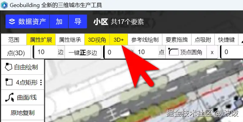 第二步,在左侧基于规划图,绘制建筑轮廓,并设置高度。