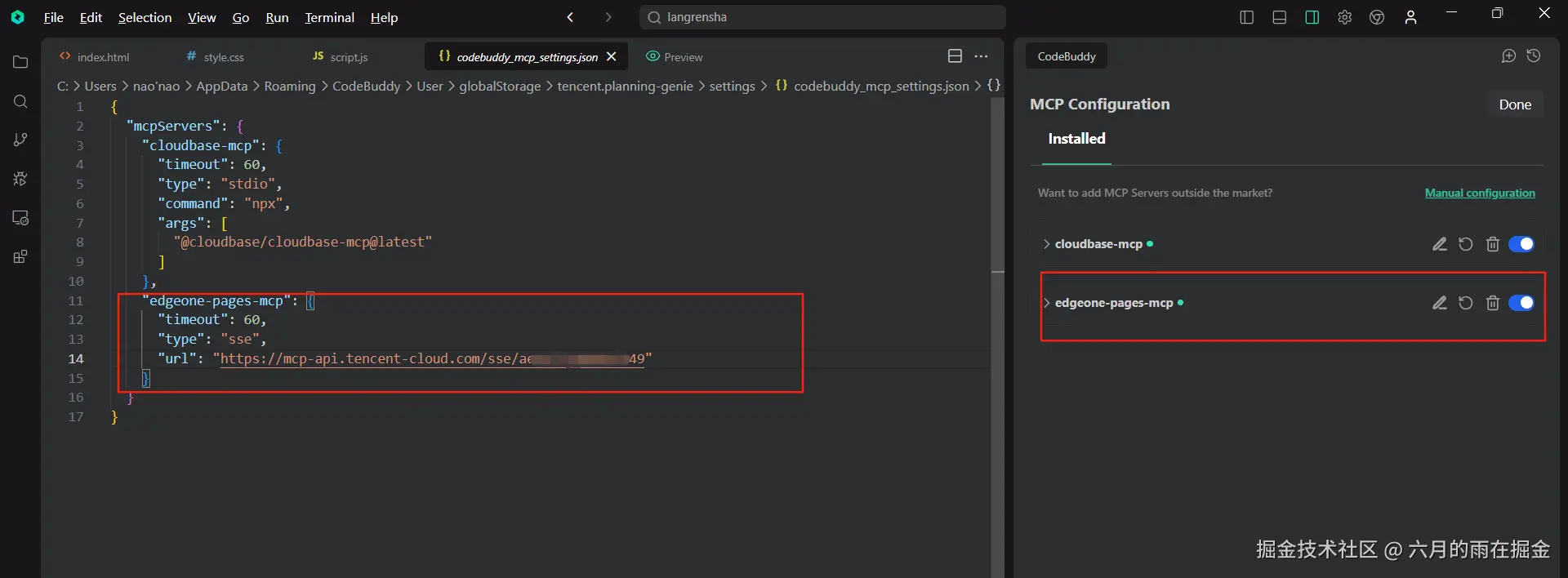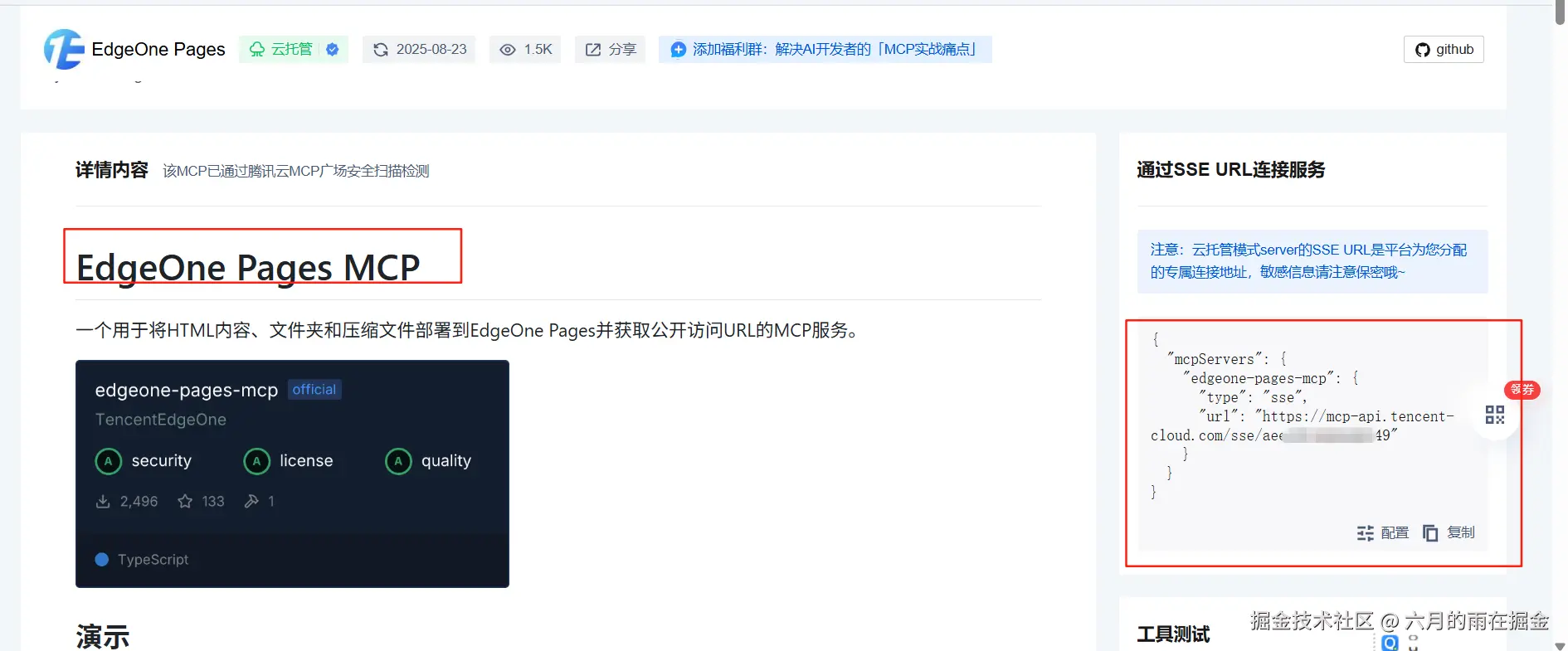 MCP Server:这里我们需要用到的是腾讯云 EdgeOne ,对应的 MCP Server 就是 EdgeOne Pages MCP Server