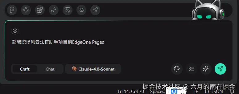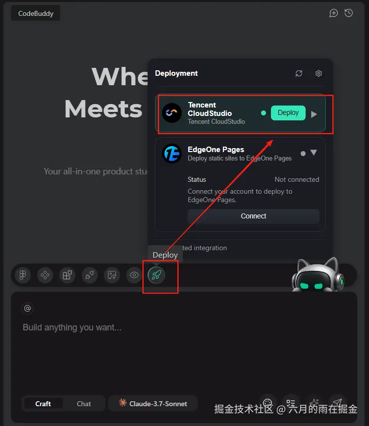 当然我们除了可以部署到腾讯云 EdgeOne ,我们也可以直接在 CodeBuddy IDE 选择发布,将我们的工程师狼人杀发布到腾讯云 Cloud Studio,目前通过 CodeBuddy IDE 发布到 Cloud Studio 的项目,无需开通 Cloud Studio 帐号,直接发布到公共帐号空间