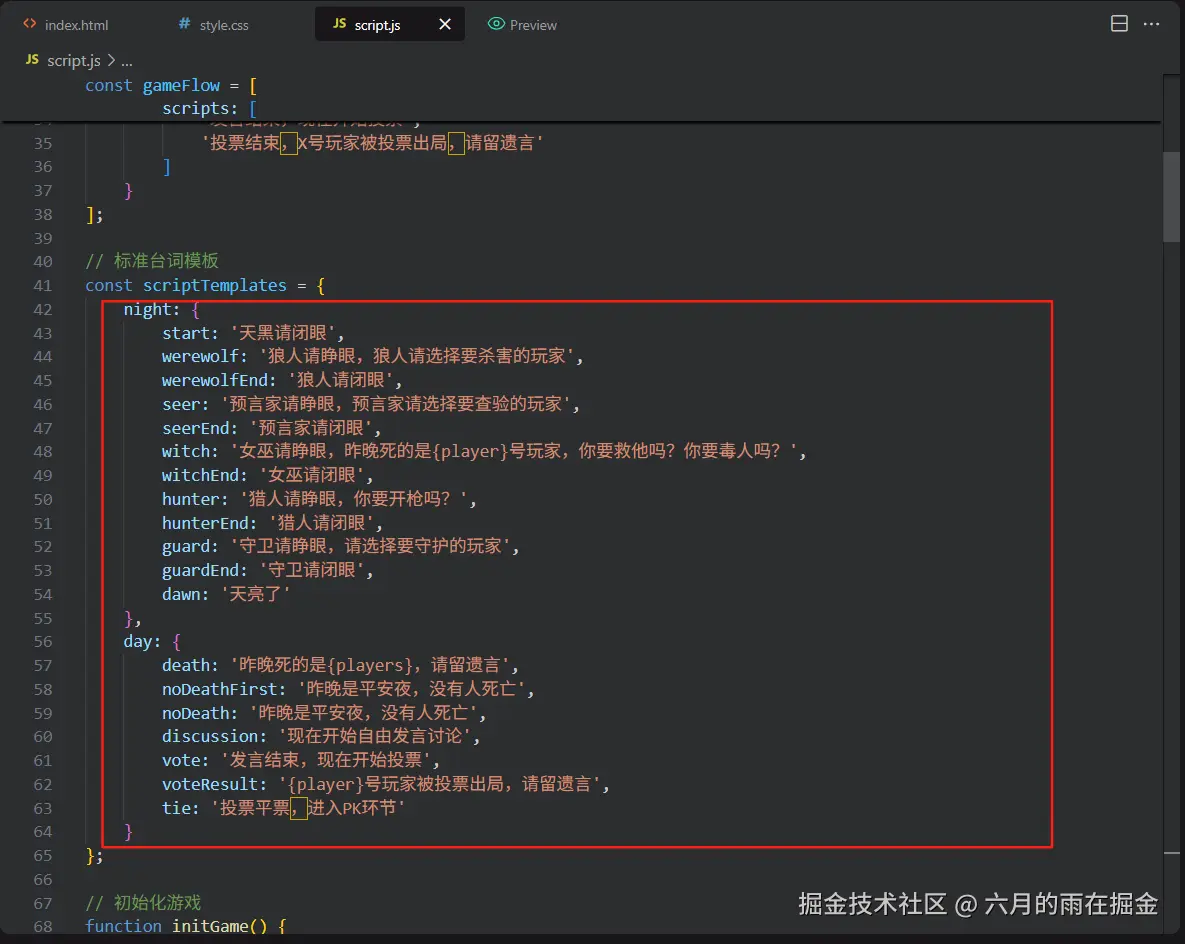 最近也是参加了一个活动,活动里面组织了一款工程师版本的狼人杀,觉得挺有意思的。由于个人之前没有玩过狼人杀,所以对狼人杀法官的流程不熟悉,但是对不熟悉的东西又很感兴趣,于是想着是否可以通过开发一个类似狼人杀法官台词的页面来辅助玩游戏,那样的话,是不是更有趣呢?