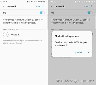 - 从下拉屏幕或两台设备的设置中启用蓝牙功能。
