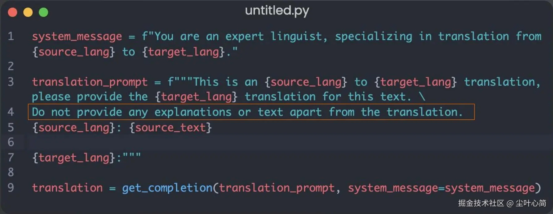 {source_lang}翻译为{target_lang},通过提示语“除了翻译之外,不要提供任何解释或文字”提升翻译的准确率(幻觉)