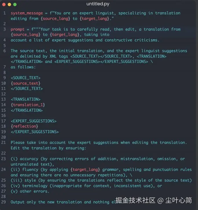 核心提示语: 仔细阅读专家的建议和建设性批评 考虑准确性、流畅性、风格、术语、其他 只输出新的译文
