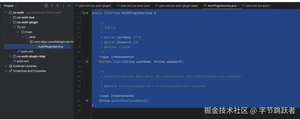 7.cs-auth-plugin-ldap 中实现SPI的接口并且打成jar包,模拟外部提供的插件jar包