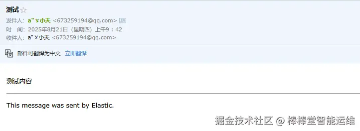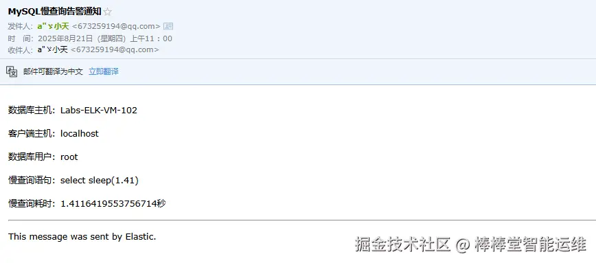 (11)登录邮件接收人邮箱后台,查看收件箱已接收到主题为“MySQL慢查询告警通知”的告警邮件,如图3-23所示。