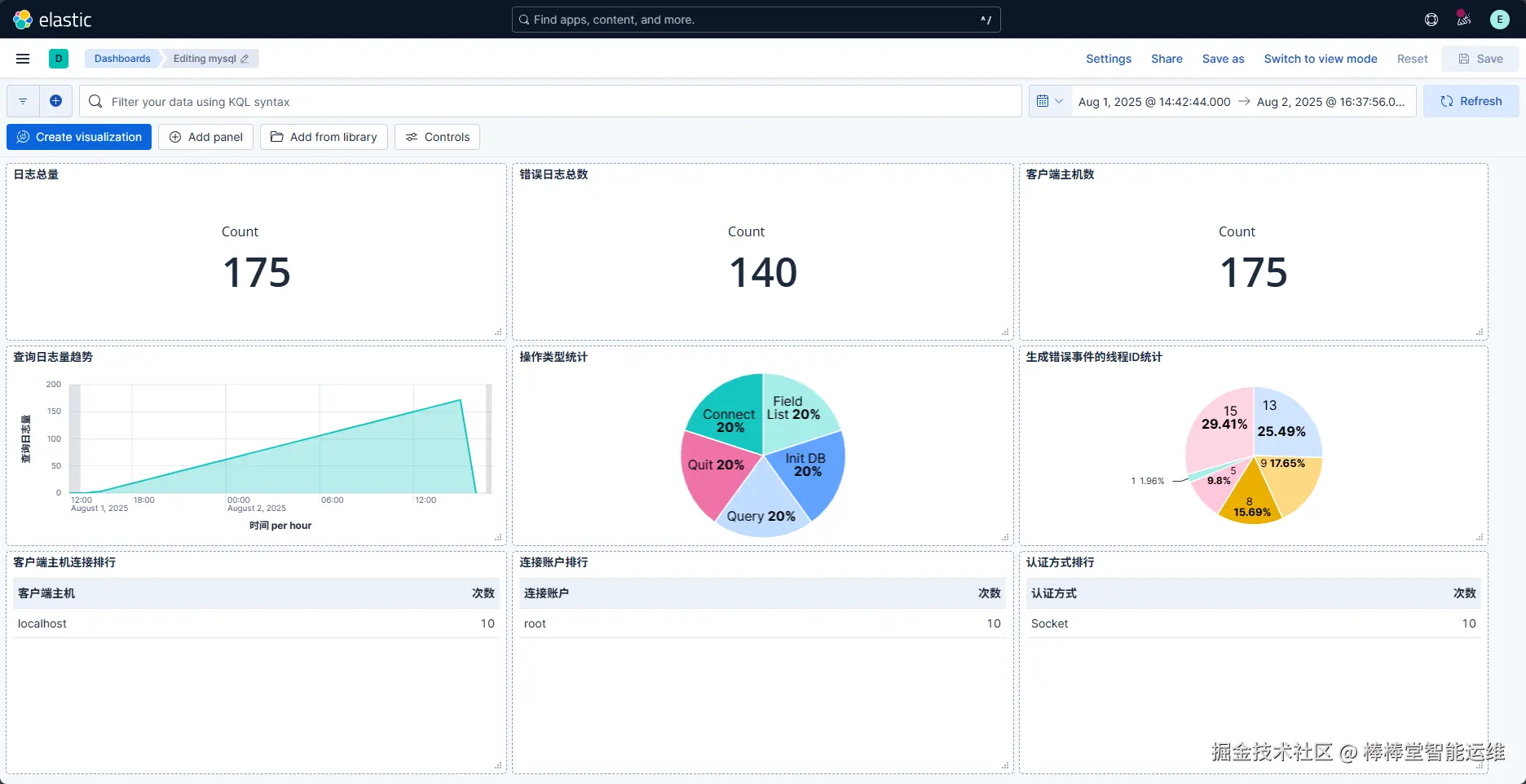 4、掌握基于Kibana实现MySQL数据库日志的可视化分析。