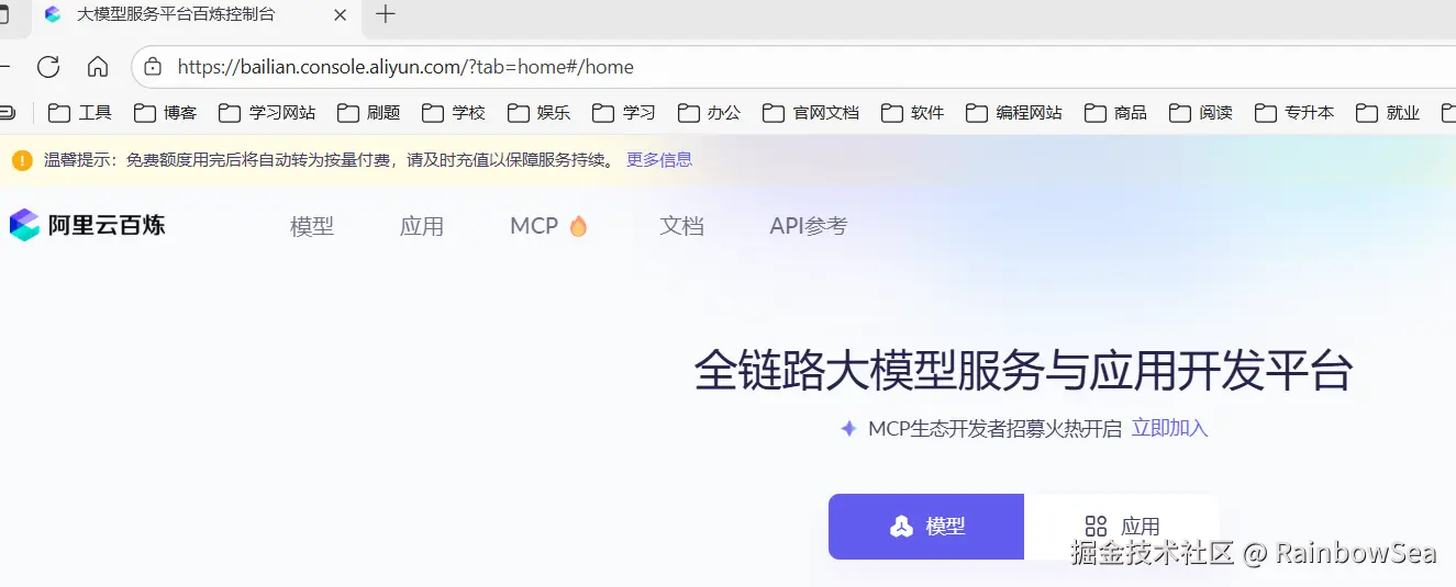 接入阿里百炼平台的通义模型:bailian.console.aliyun.com/?tab=home#/…
