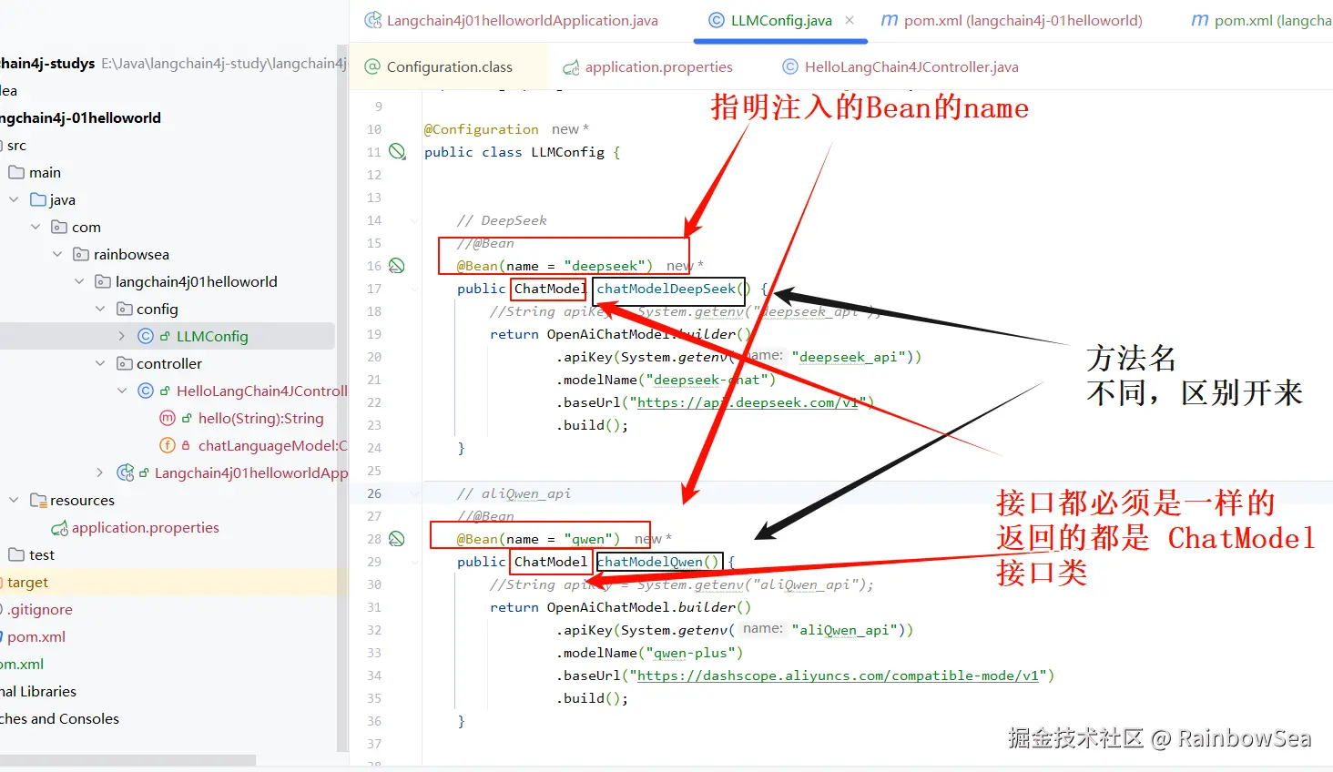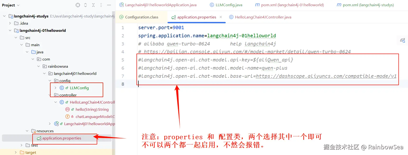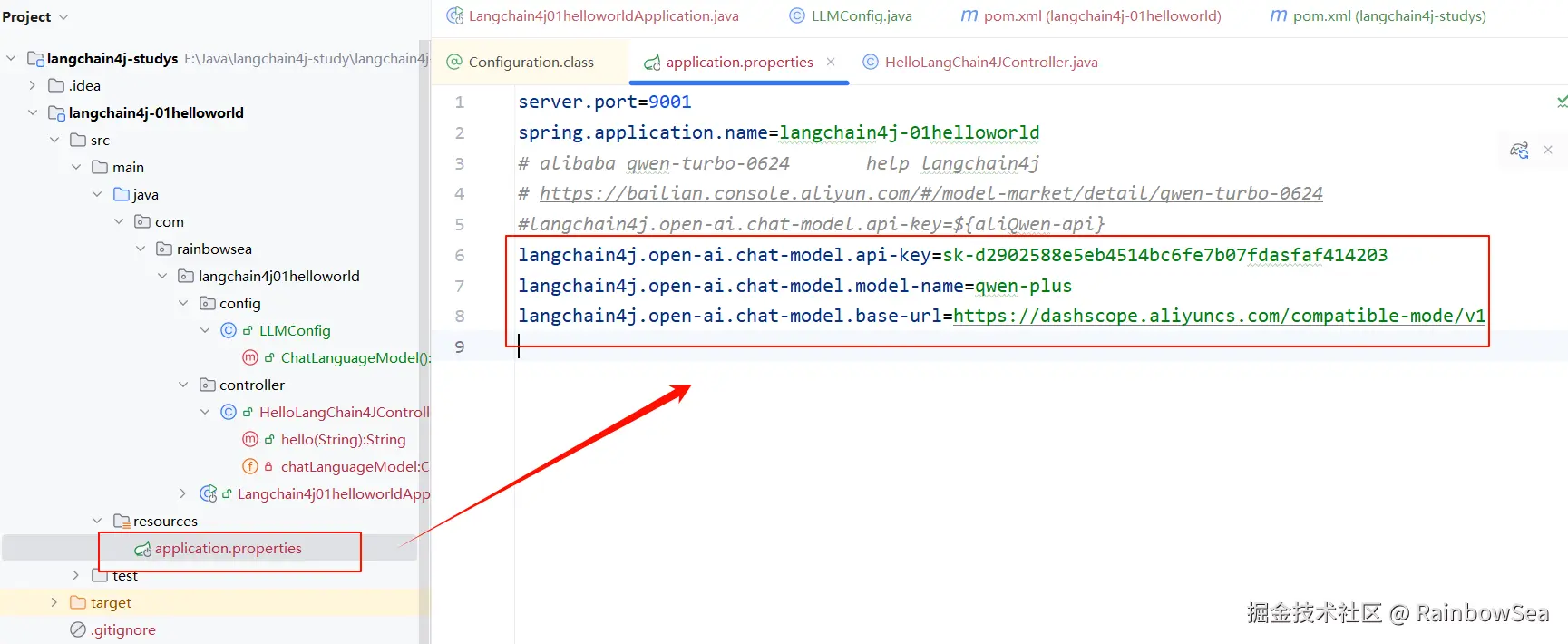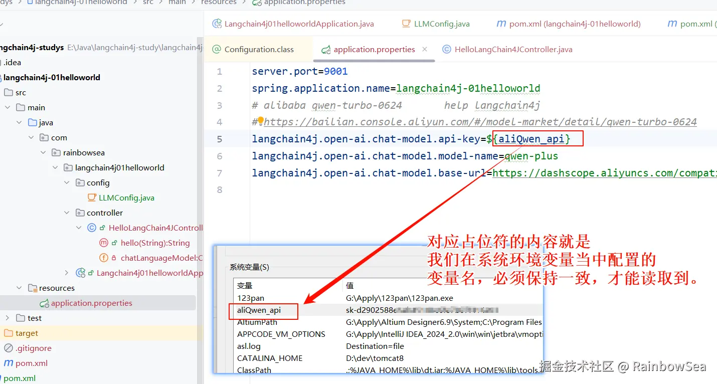 上述我们是将大模型的 Key 配置到了,application.properties 配置文件当中。