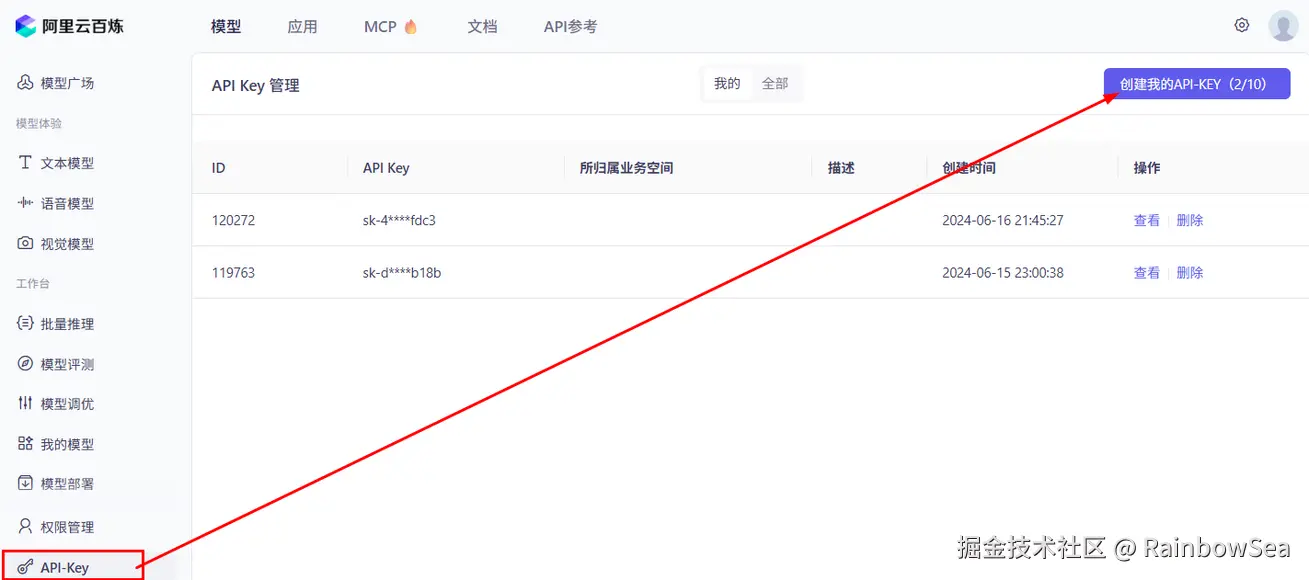 - 获得对应大模型的 Api-Key