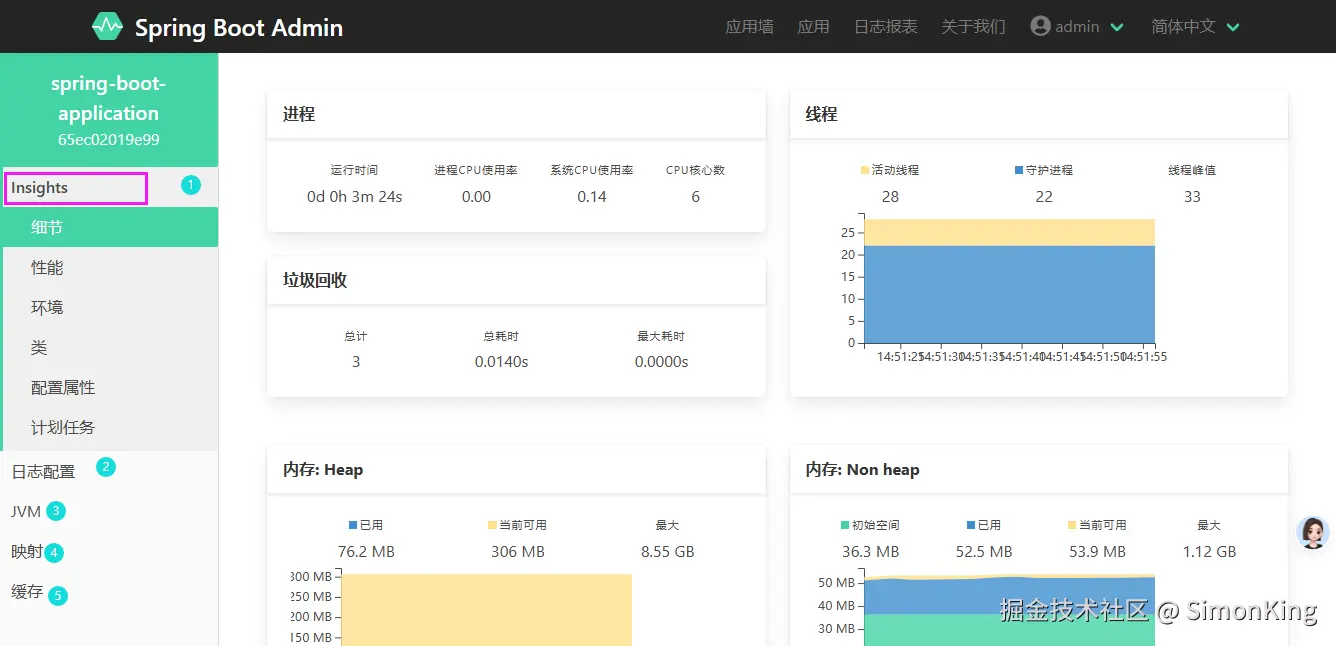 Spring Boot Admin 通过集成 Spring Boot Actuator 端点来获取应用数据,并提供了一个友好的 Web UI 界面来展示这些信息。