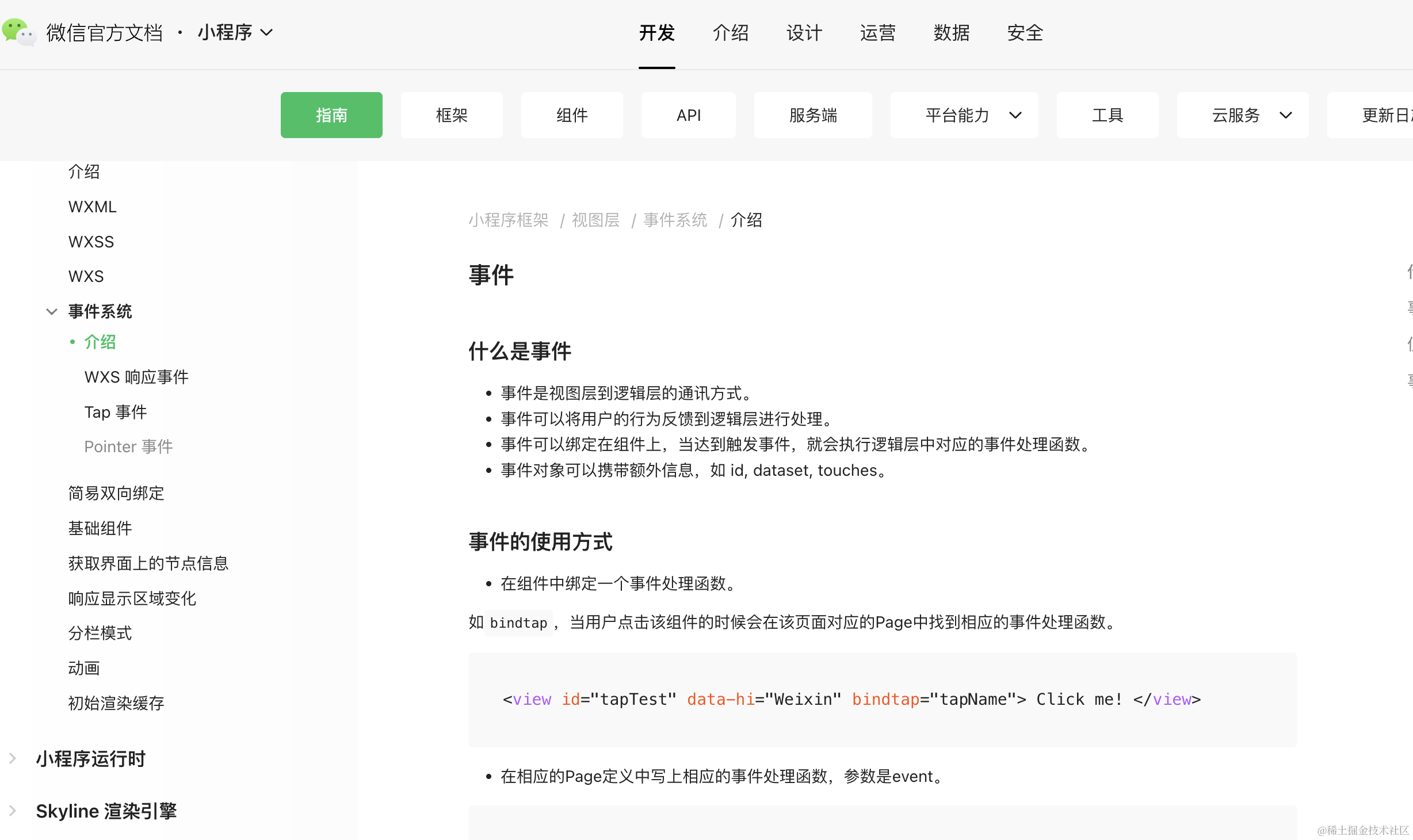 如bindtap,当用户点击该组件的时候会在该页面对应的Page中找到相应的事件处理函数。