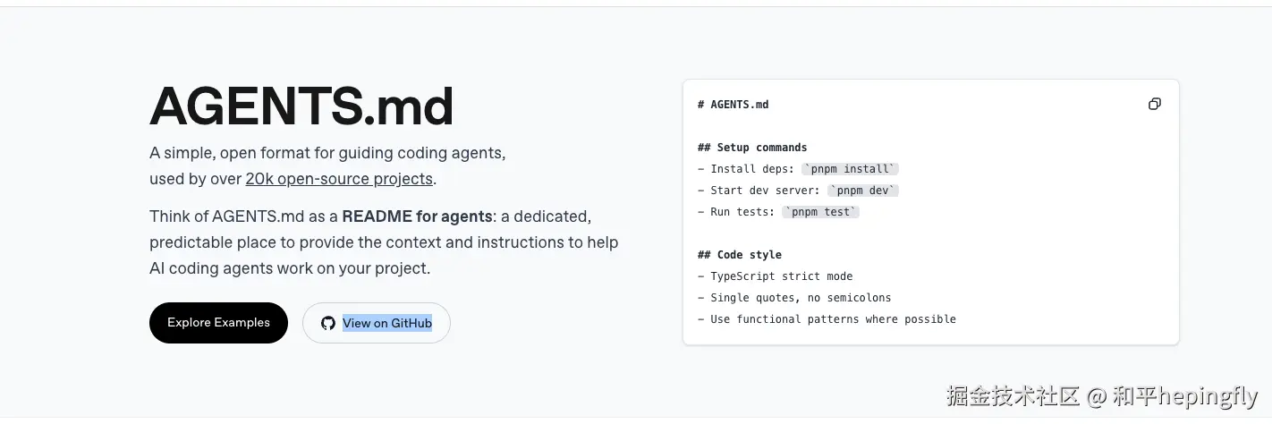 它是一个专门给 AI 编码代理(Coding Agents)看的 README 文件,让所有工具共用一份配置。