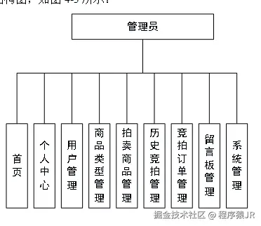 管理员登录进入在线拍卖系统可以查看首页、个人中心、用户管理、商品类型管理、拍卖商品管理、历史竞拍管理、竞拍订单管理、留言板管理、系统管理等内容,如图5-2所示。编辑
