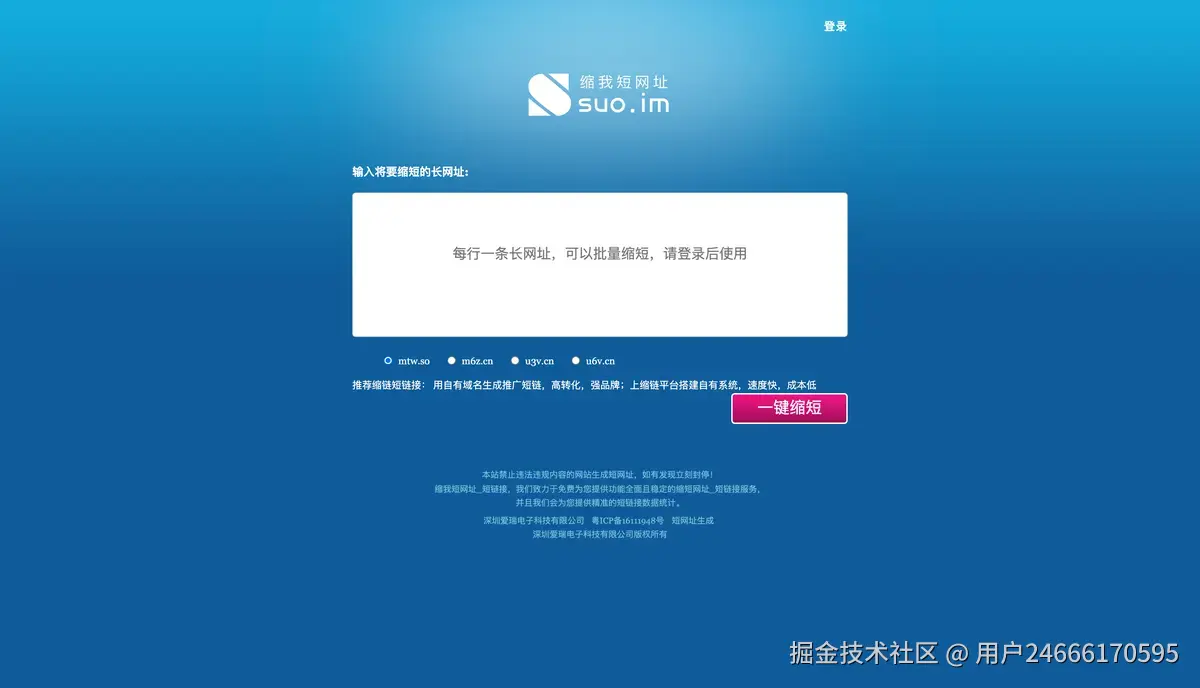 优点:免费、稳定,支持批量生成、多个短域名可选,国内老牌,生成短网址需要登录。