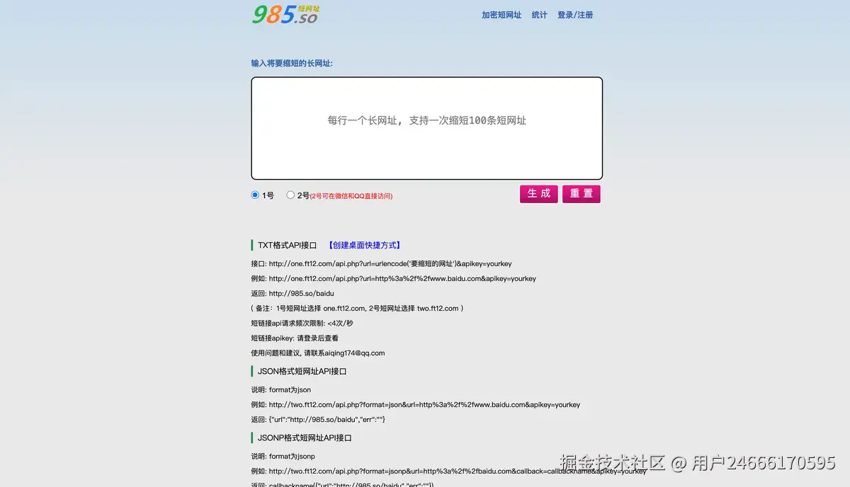 优点:免费、快速、稳定,支持批量生成、支持统计功能,国内老牌,主打API功能和批量生成功能。
