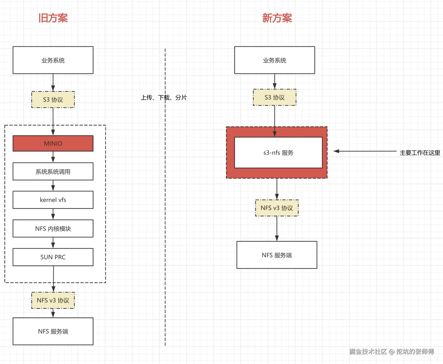 - 直接使用NFS协议与服务器通信,避开VFS层的锁竞争,实现S3到NFS的协议转换