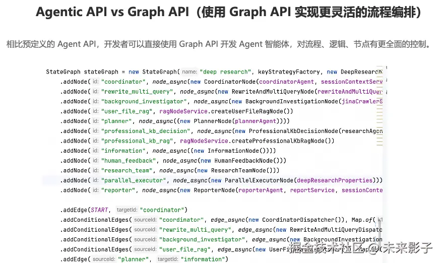 主流Agent开发范式:Agent、Workflow、Multi-Agent 等主流智能体开发模式Spring AI Alibaba Graph:如何使用 Spring AI Alibaba 定义和编排 Agent 格式分布式Agent:基于 A2A 协议与 Nacos 的远程分布式 AGent 架构Spring AI Alibaba Studio Platform:Agent 开发、调试、评估、部署平台