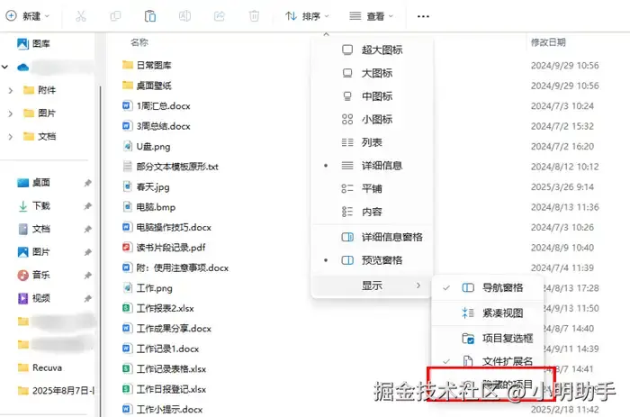 恢复电脑剪切文件方法5:检查文件是否被隐藏