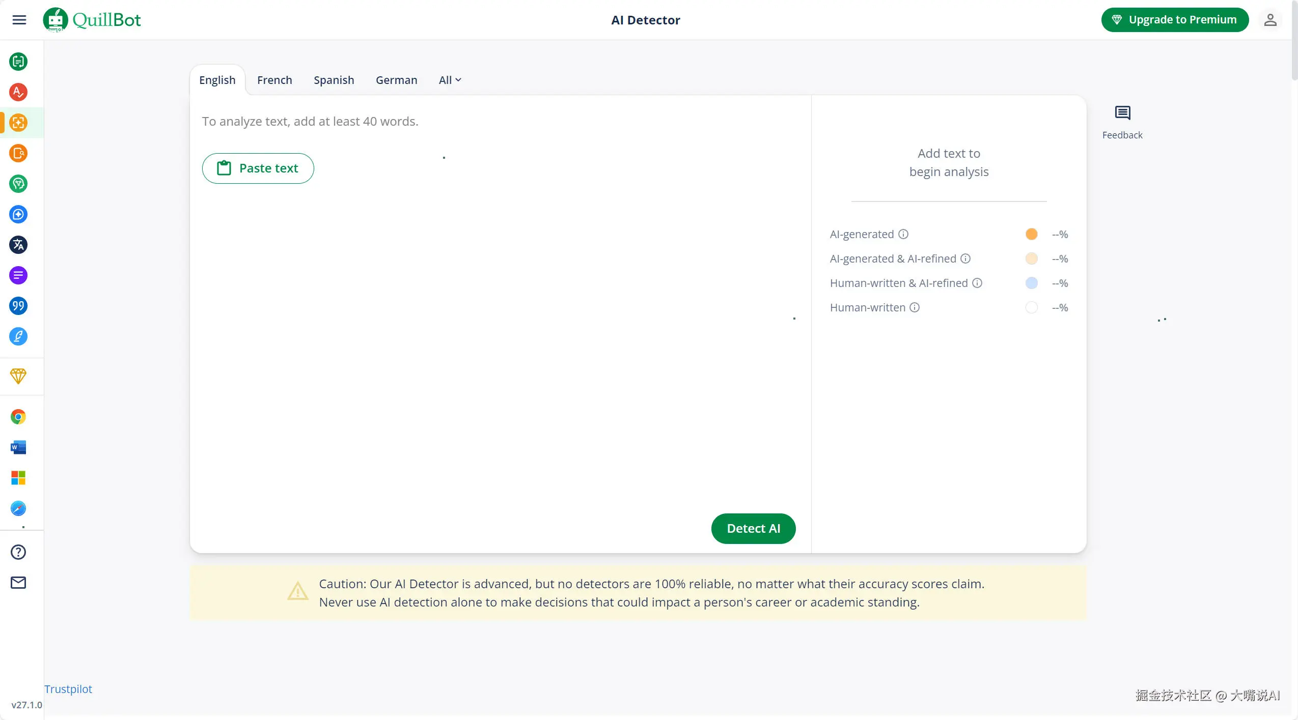 Quillbot也是一款基于AI的写作辅助工具,主要功能包括文本改写、语法检查、同义词替换等。它就像一个文字魔法师,能帮助用户优化句子结构,提升表达的流畅度。适用于学术写作、文案创作、邮件撰写等各种场景。它还提供多种改写模式,像标准、简洁、创意等,满足不同风格的需求,让你的文字可以随心所欲地变换风格。