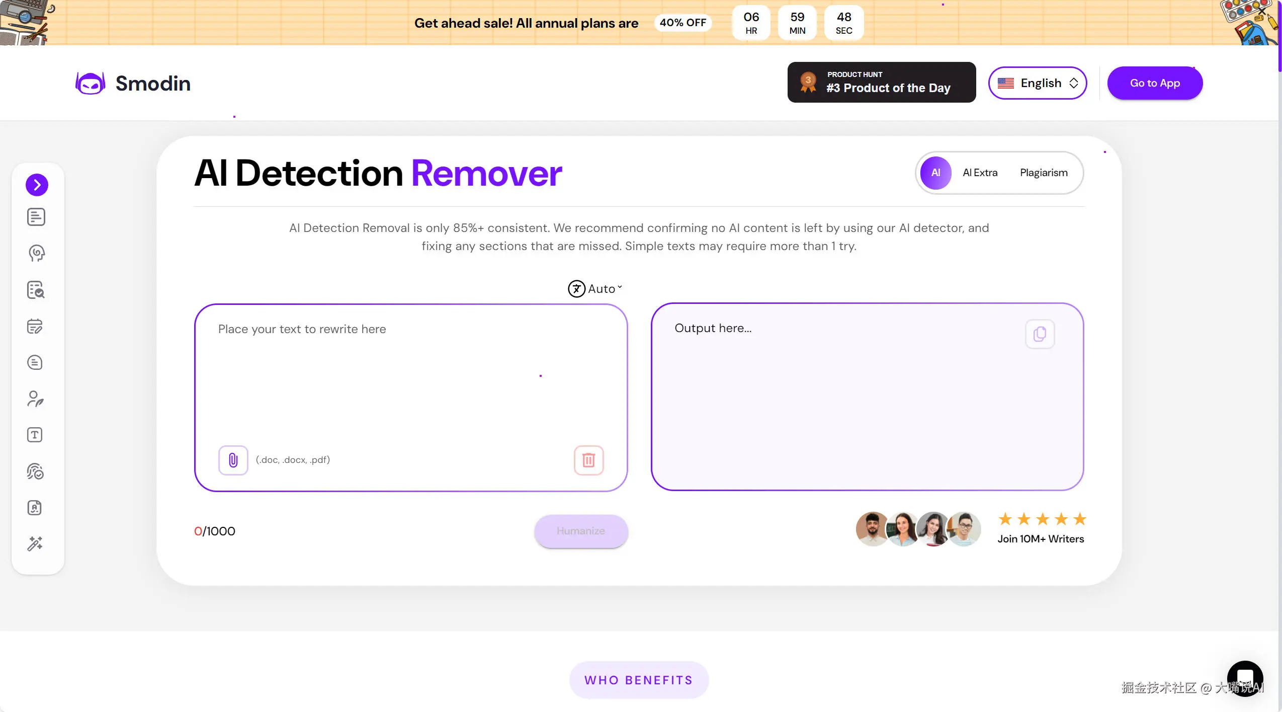 Smodin也是一款很有意思的AI写作辅助工具,主要面向的是学生群体以及创作者们。它提供了丰富多样的服务,像文本生成、改写、校对、翻译等等,而且支持多语言处理,不管你用什么语言写作,它都能帮上忙。它的功能涵盖了语法检查、风格调整,甚至还有plagiarism检测,对于提升写作内容的质量以及创作效率都有很大的帮助。