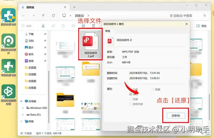 回收站清空了恢复步骤3:点击还原按钮