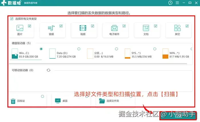 回收站怎么恢复已删除的文件?数据 蛙恢复专家虽然不是一款全免费的数据恢复工具,但是它配置强大的文件扫描技术,支持扫描恢复包括文档、电子邮件、音频、图片、视频等几十种文件类型。它还有其他亮点,可以查看下文: