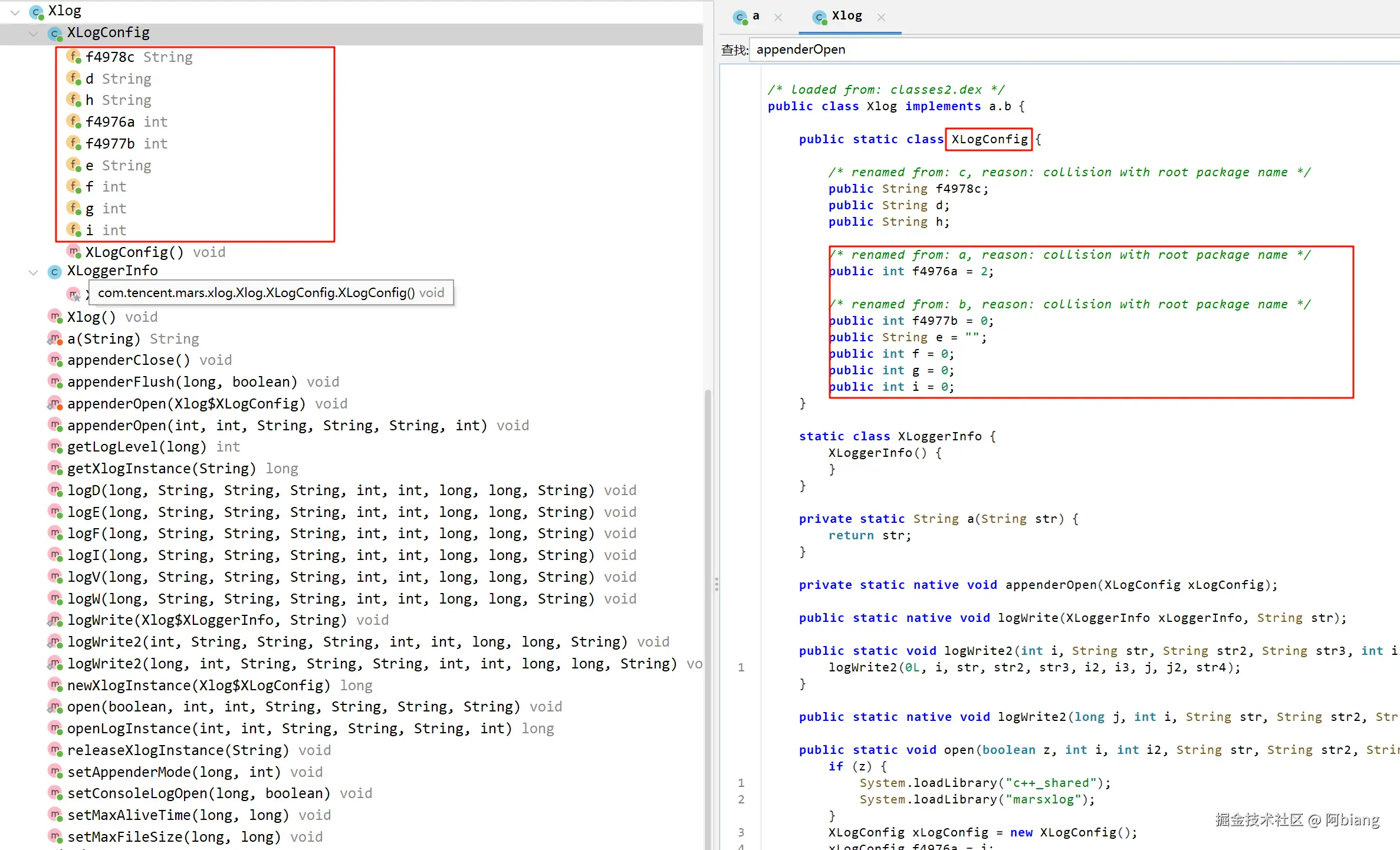 可以看到被混淆后的XLogConfig类中确实没有level字段,而混淆前的代码里是有的。