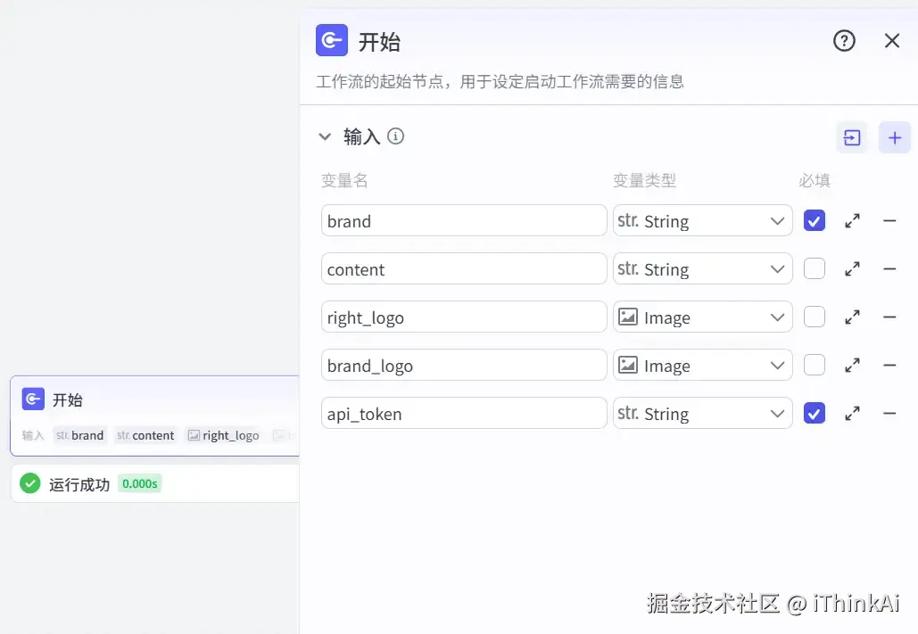 1.通过前置节点准备品牌名、品牌logo2.用大模型生成分镜脚本3. 批量生成分镜图片、配音