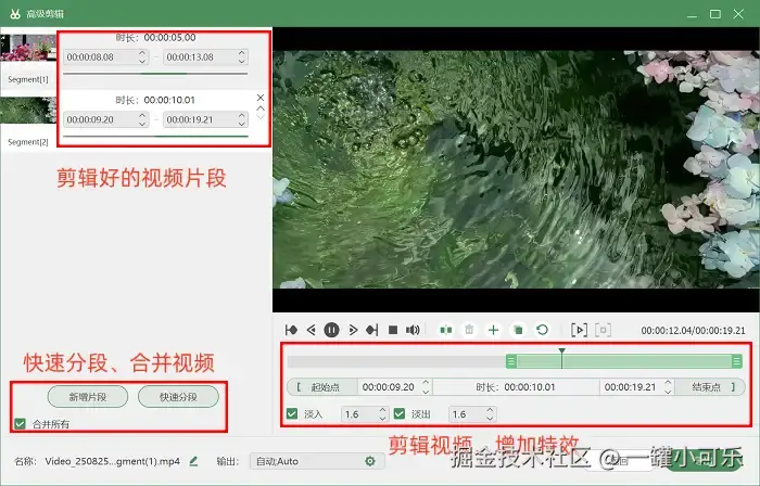 步骤3:视频录制完成后,如果你想对内容进行优化,比如添加特效、裁剪片段等,也不用额外安装其他剪辑工具。直接在数据蛙录屏软件中找到 “高级剪辑” 功能并点击,进入剪辑界面后,就可以对录制好的视频进行特效添加、片段删减、时长调整等操作了。