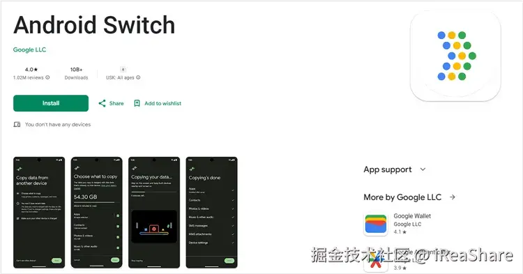 Android Switch 应用由 Google 开发,是一款数据传输工具,旨在帮助用户将信息从一台设备迁移到新的 Android 设备。您可以使用它将数据从旧 Android 手机迁移到新 Android 设备。不过,它支持 Android 9.0 或更高版本,因此您无法在非常老旧的 Android 手机上使用它。