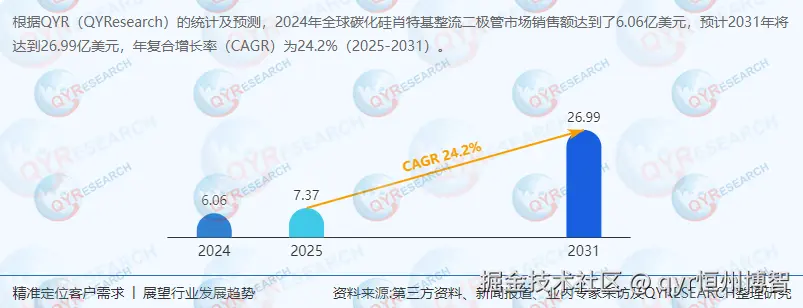 全球市场:根据QYResearch最新调研报告显示,2024年销售额6.06亿美元,2031年预计达26.99亿美元,CAGR 24.2%;