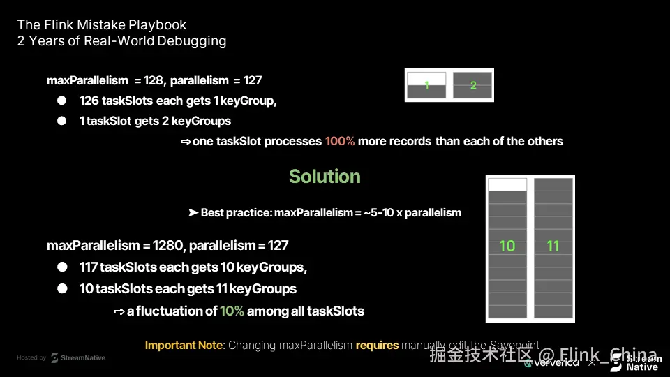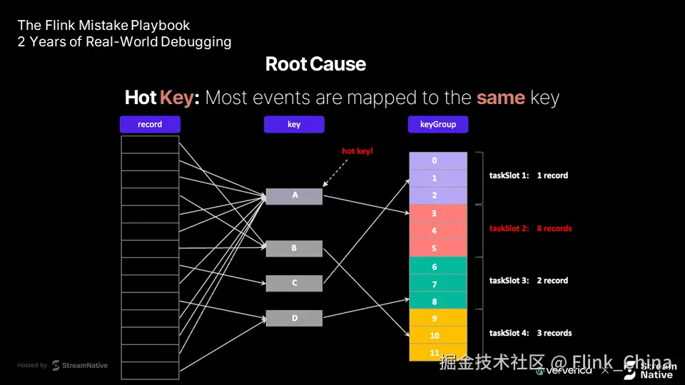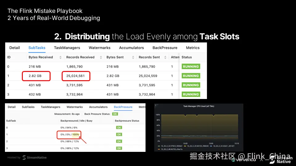常见反馈是:虽然设置了并行度为 10,但部分 TaskManager CPU 达到 100%,而其他却接近空闲。