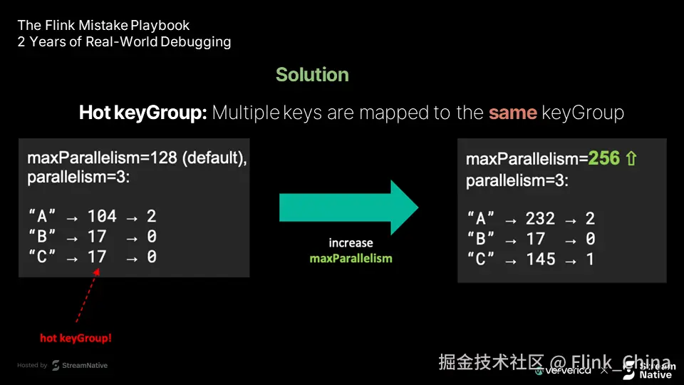 - 数据预处理与重平衡 在 keyBy 前加入采样或数据打散步骤,提升负载均衡性。