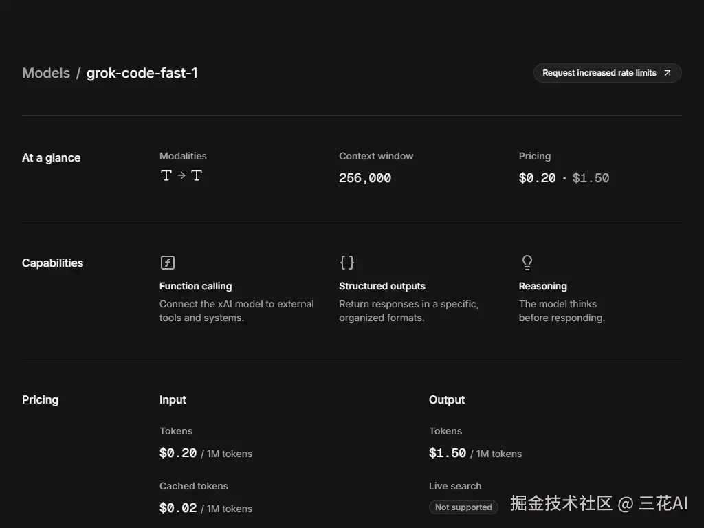 xAI 正式发布首款编程专用模型 Grok Code Fast 1[1](代号 Sonic),模型具备 256K 上下文窗口,现已在主流 AI 编程工具上限时免费开放。