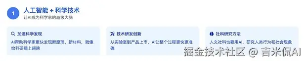 科学技术领域:AI正在重新定义研发方式。过去创新药研发要十几年,现在AI辅助下可能只需要几年。这意味着大量新的就业岗位会出现。