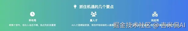 民生福祉领域:教育和医疗两座大山,AI都要参与改造。想象一下,当每个孩子都有专属的AI老师,当每个病人都能享受AI辅助诊疗,这背后需要多少懂AI的专业人士?