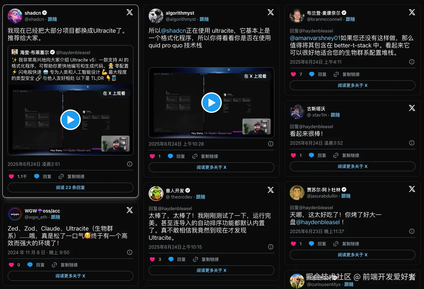 npx ultracite init,一键搞定。 - AI 原生友好:不用再手动把规范贴给 AI,Ultracite 自动生成