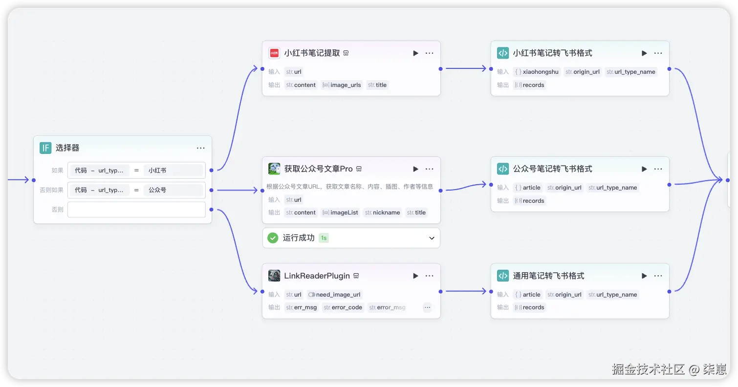 上一篇文章,我们做一个《小红书笔记采集,自动归档飞书文档》的coze工作流,解决了小红书内容批量采集与整理的难题。这次,我们再原来的基础上再次扩展,增加公众号文章采集、以及任意网站通用采集功能,覆盖更多场景,实现“一流程搞定多平台内容归档”,大幅提升信息整理效率。