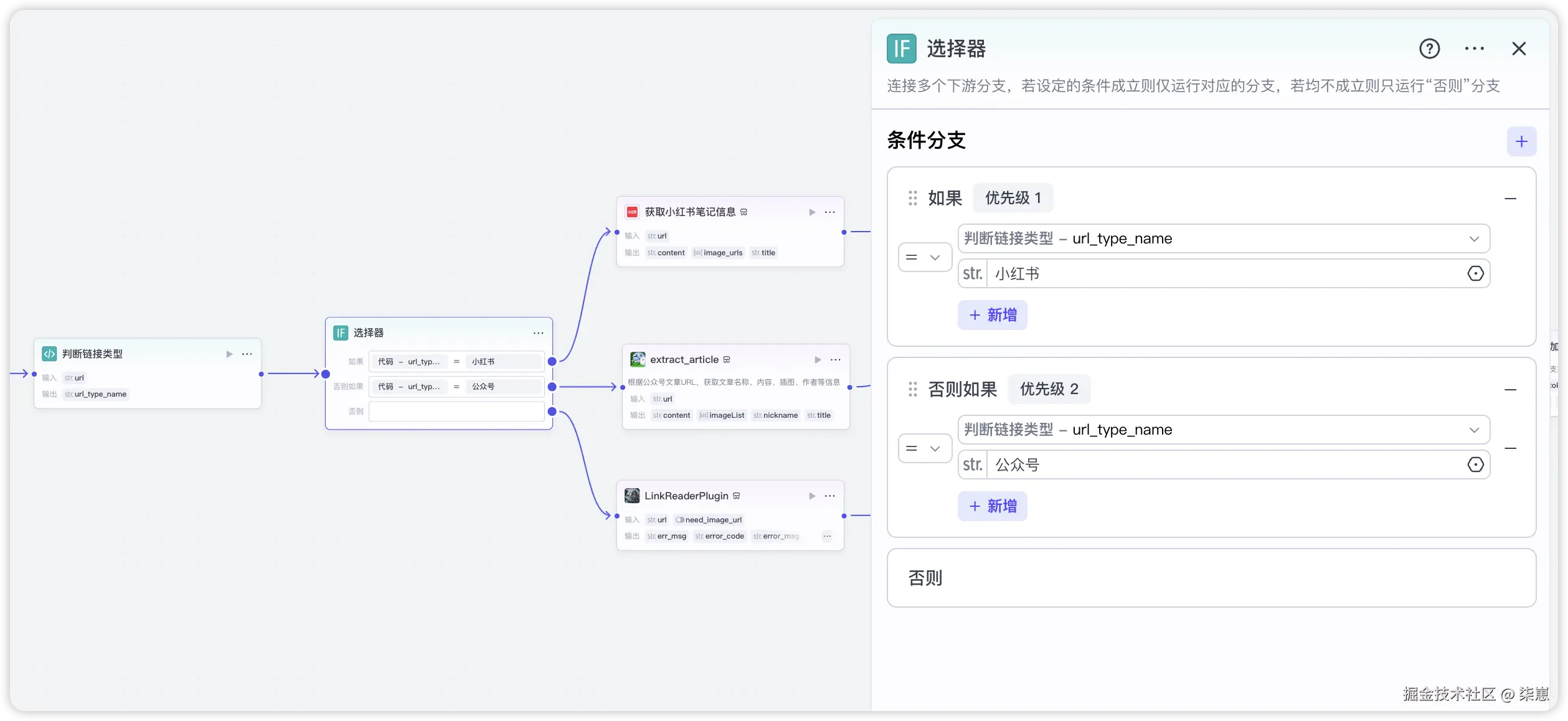 “文章采集” 环节通过分支设计,实现不同平台内容的差异化采集。