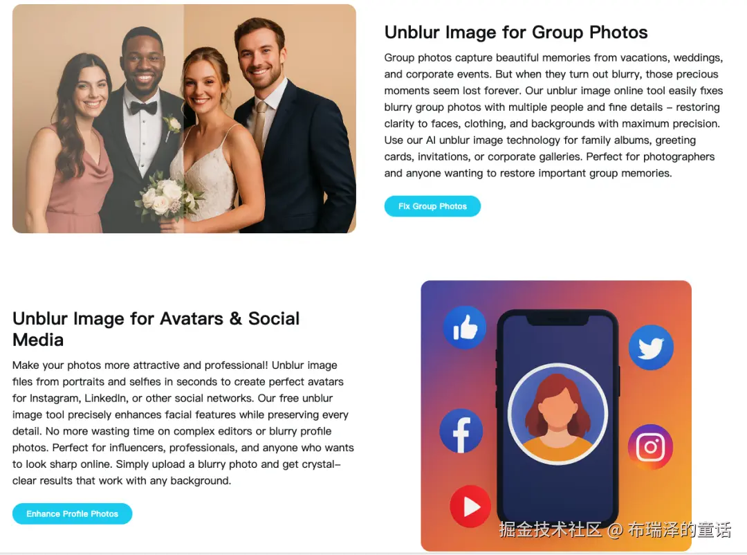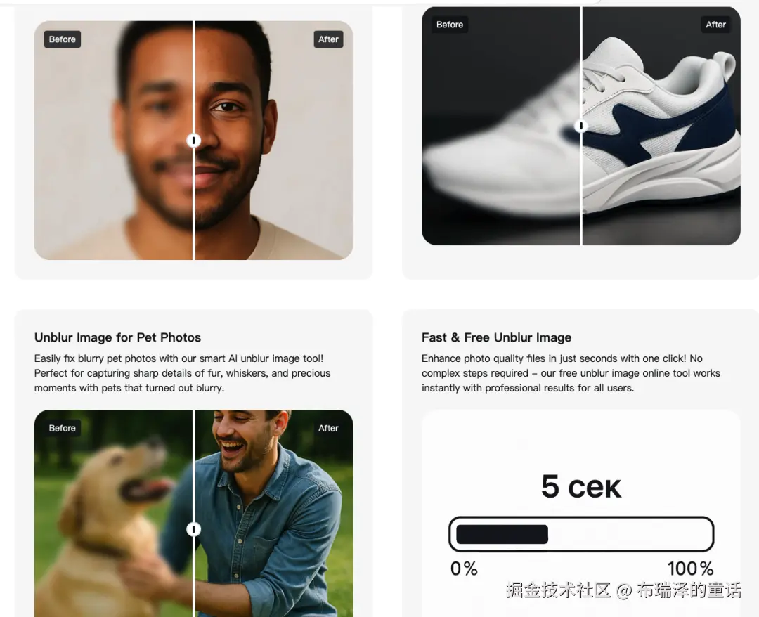 - • ✅ Unblur Image(去模糊修复) :AI 自动恢复模糊照片的细节与清晰度。