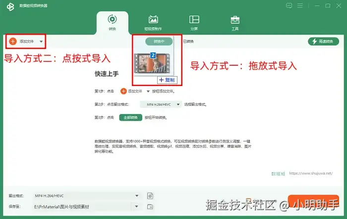数据 蛙视频转换器可以对1000种文件格式进行转换处理,包括批量转换视频、音频和图片格式,同时也可以批量压缩视频文件。对于新手小白来说,这款软件是比较容易掌握的,比如你可以直接将源视频文件拖拽到软件中进行导入,而且操作过程中不需要设置复杂的输出参数。