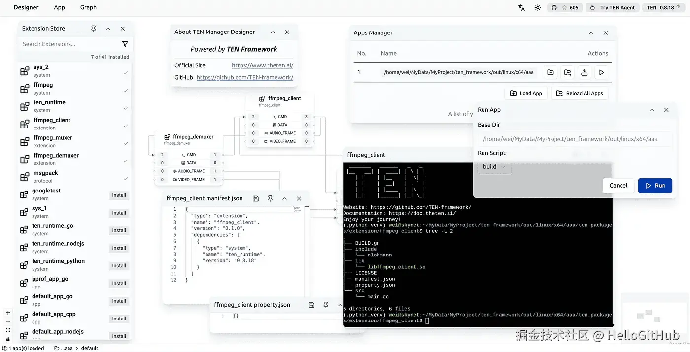 33、ten-framework:开源的实时多模态对话 AI 框架。这是一个专为实时 AI 音视频互动场景设计的框架。它内置友好的 Web 界面,便于创建、定制和部署具备语音、视觉和虚拟形象交互能力的对话型 AI 智能体。来自 @静怡 的分享