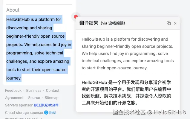 36、FluentRead:开源的浏览器翻译插件。这是一款沉浸式开源浏览器翻译插件,支持 20 多种传统和 AI 翻译引擎,以及双语对照、划词翻译等功能,帮助用户实现多语言网页沉浸式阅读体验。适用于外语学习、国际网站浏览和文档翻译等场景。来自 @孤胆枪手 的分享