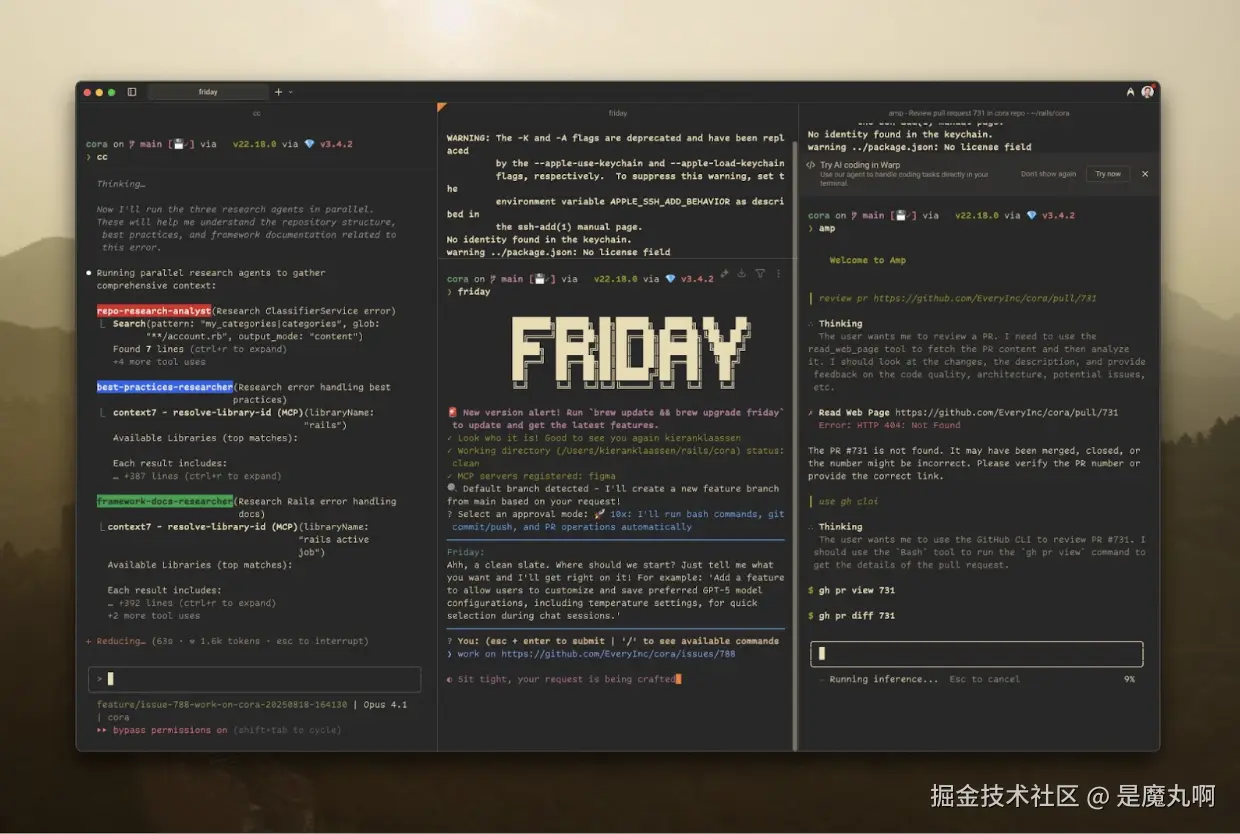 从今天开始做一次实验记录。当某件本不该失败的事失败时,投入时间确保它永不再发生——写测试、更新规则、记录经验。开三个终端,试试“三车道工作流”:一个规划、一个构建、一个审查。说一声“拉取请求”,看分支如何开枝散叶。