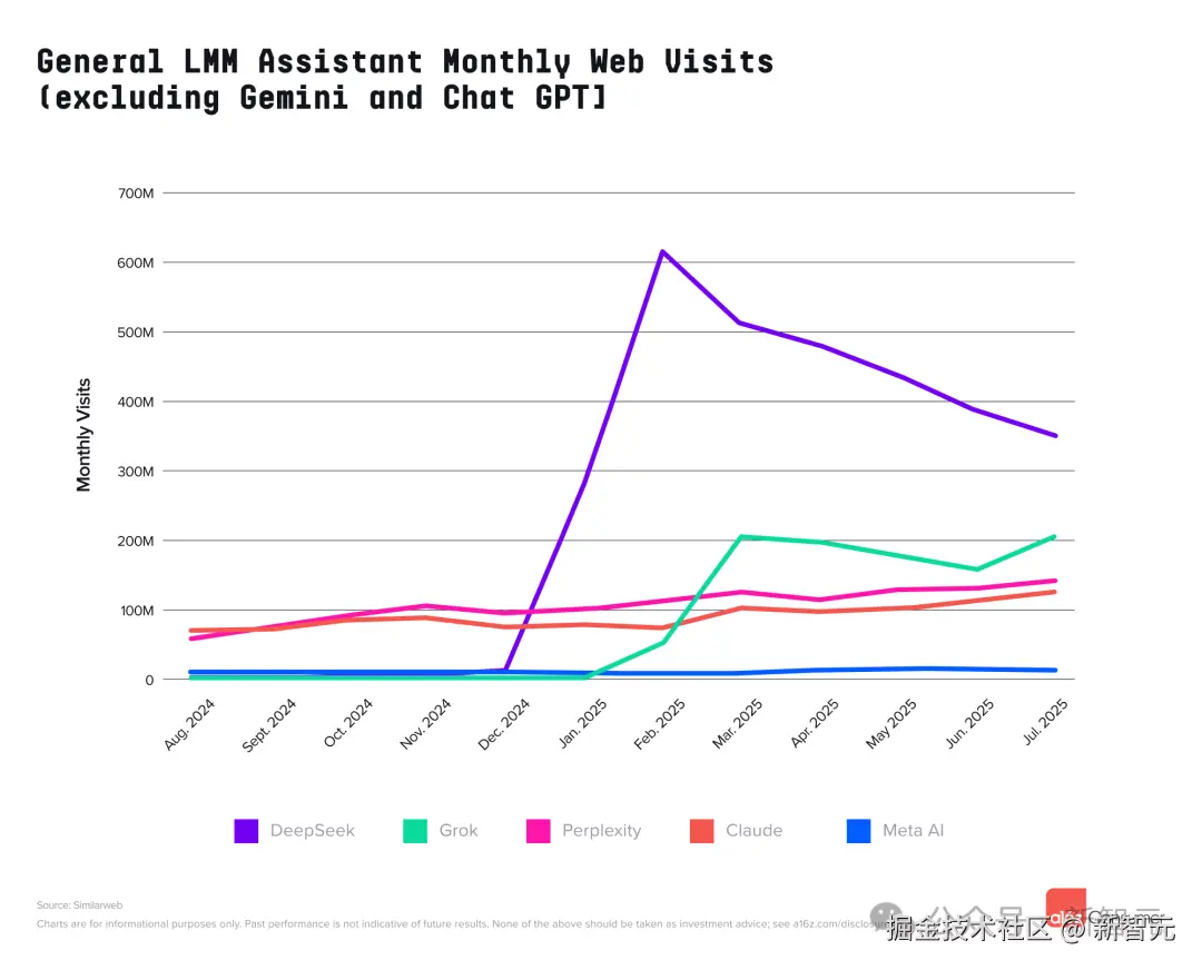 Perplexity 则与 Grok 一道,持续展现强劲的增长势头。
