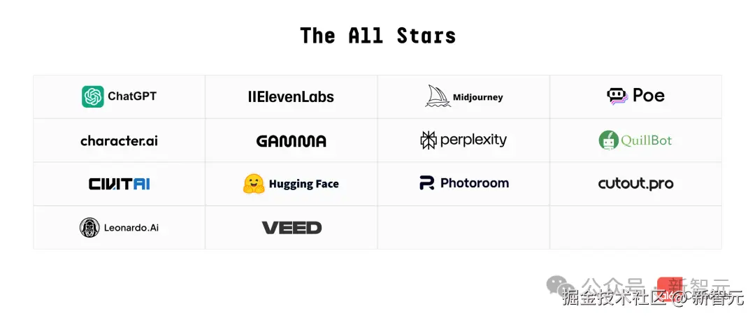 对于那些增加了重要生成式 AI 功能但并非 AI 原生的产品,如 Canva 和 Notion,则不包含在内。