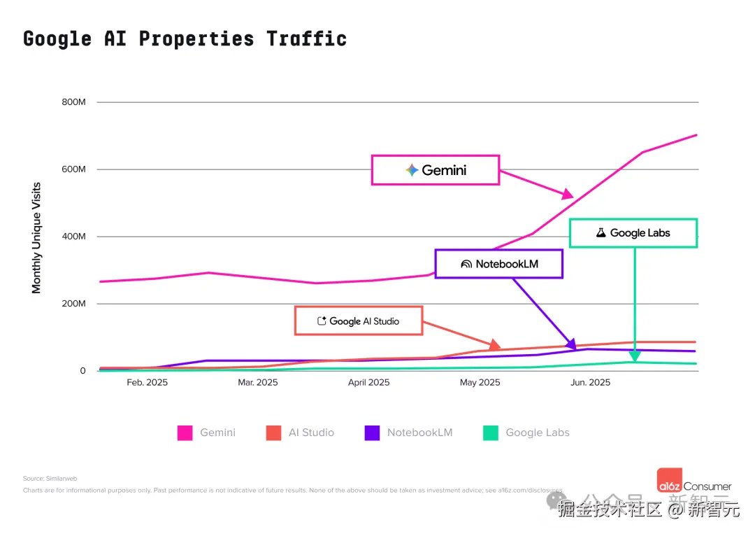 在 2025 年 5 月 Veo3 发布后,Google Labs 的流量飙升超过 13%,创下过去一年的最大单月增幅。