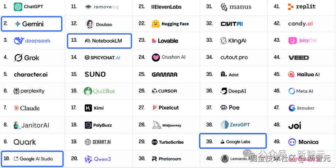 紧随其后的是排名第 13 的 NotebookLM。
