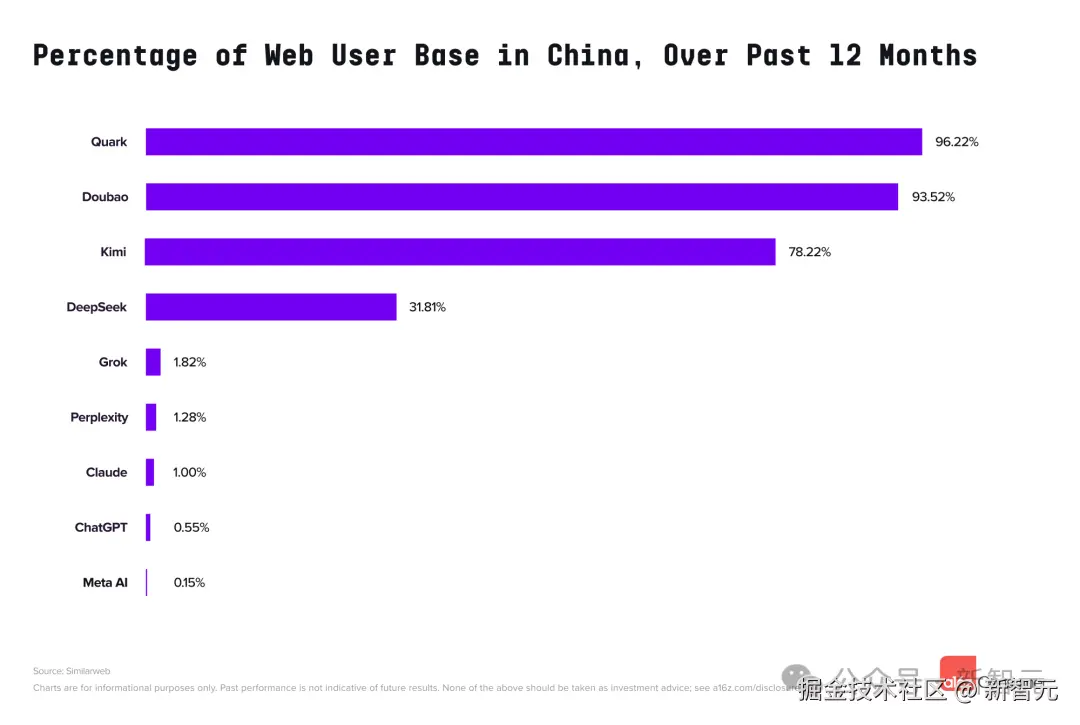 以上都是我们熟悉的产品,设有中文网站,a16z 统计这些产品超过 75% 的流量来自国内。