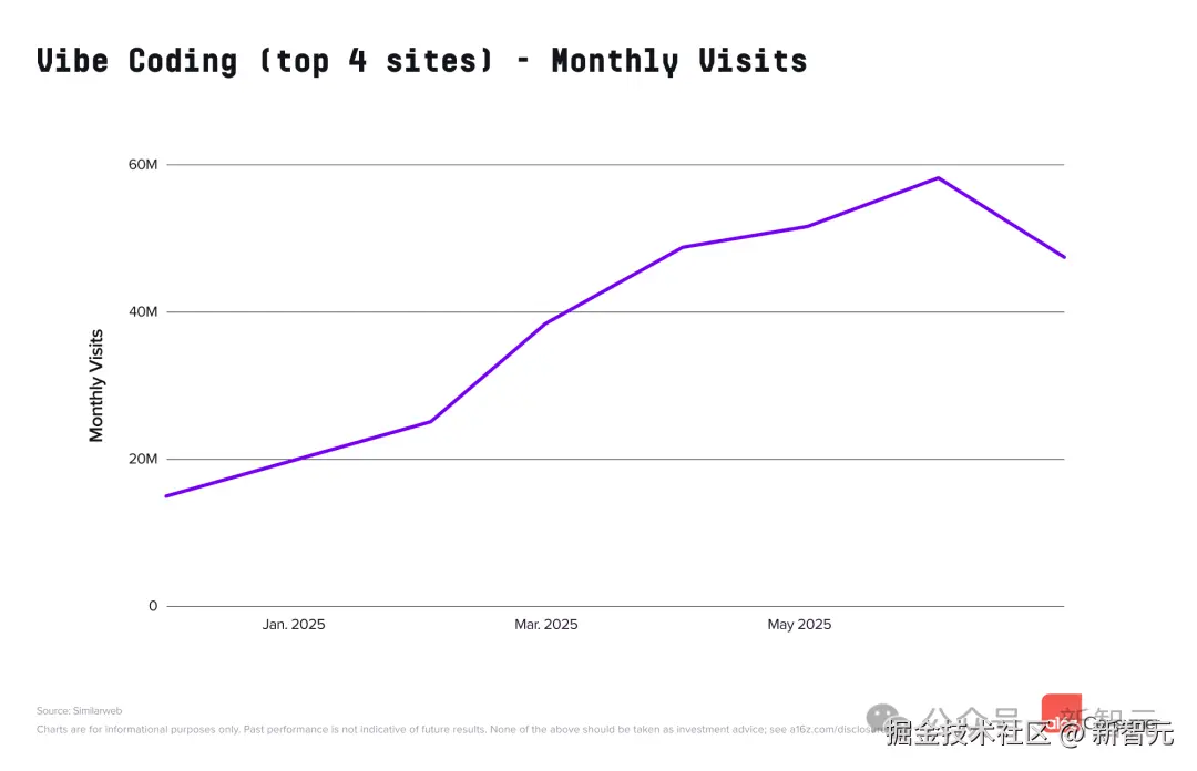 在 a16z 2025 年 3 月的榜单中,「氛围编程」(vibe coding) 的概念才刚刚萌芽——当时网站榜上只有 Bolt 一家。